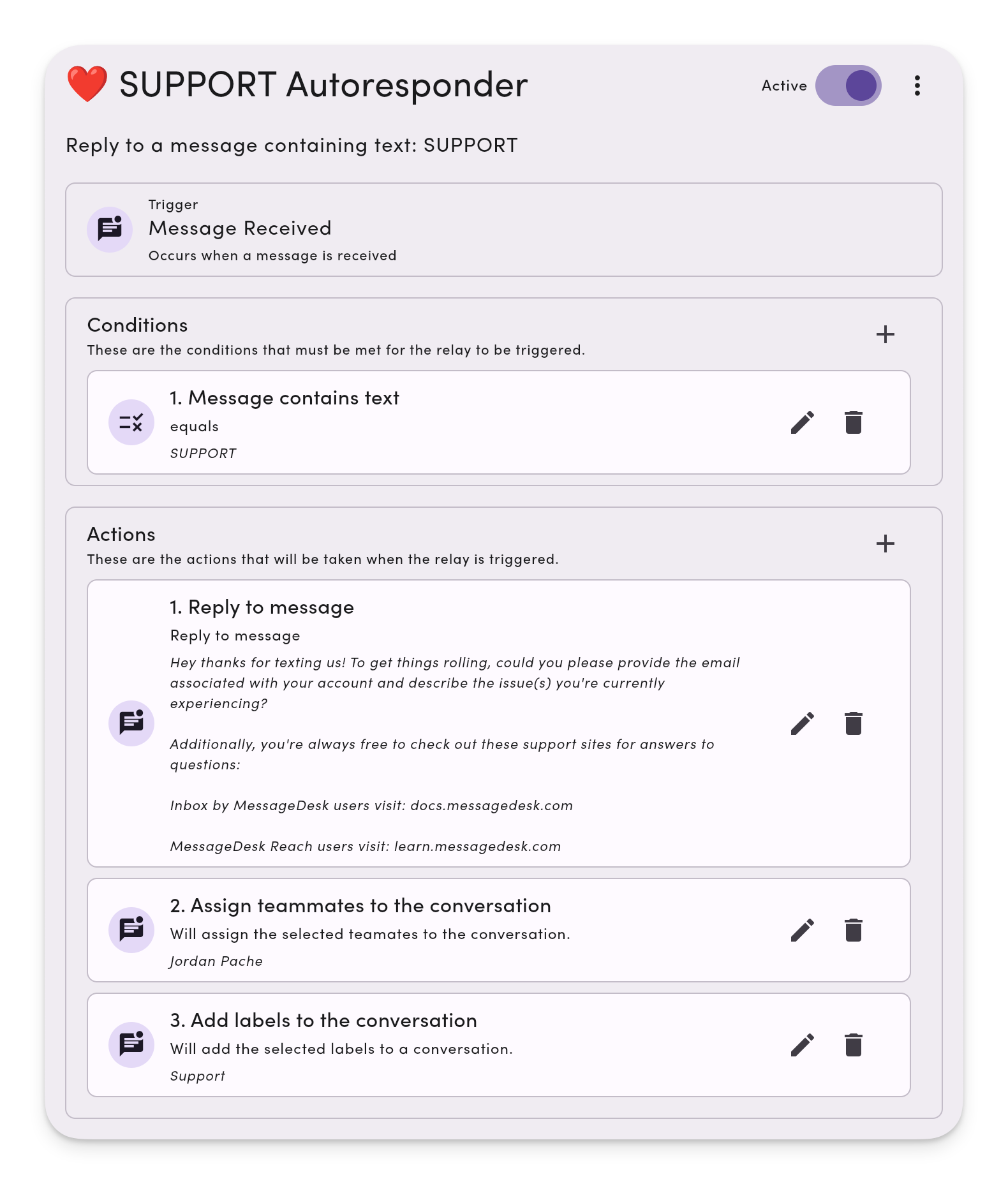 ❤️ Support & sales — Reply, label, and assign based on keywords like “quote,” “pricing,” or “help.”.