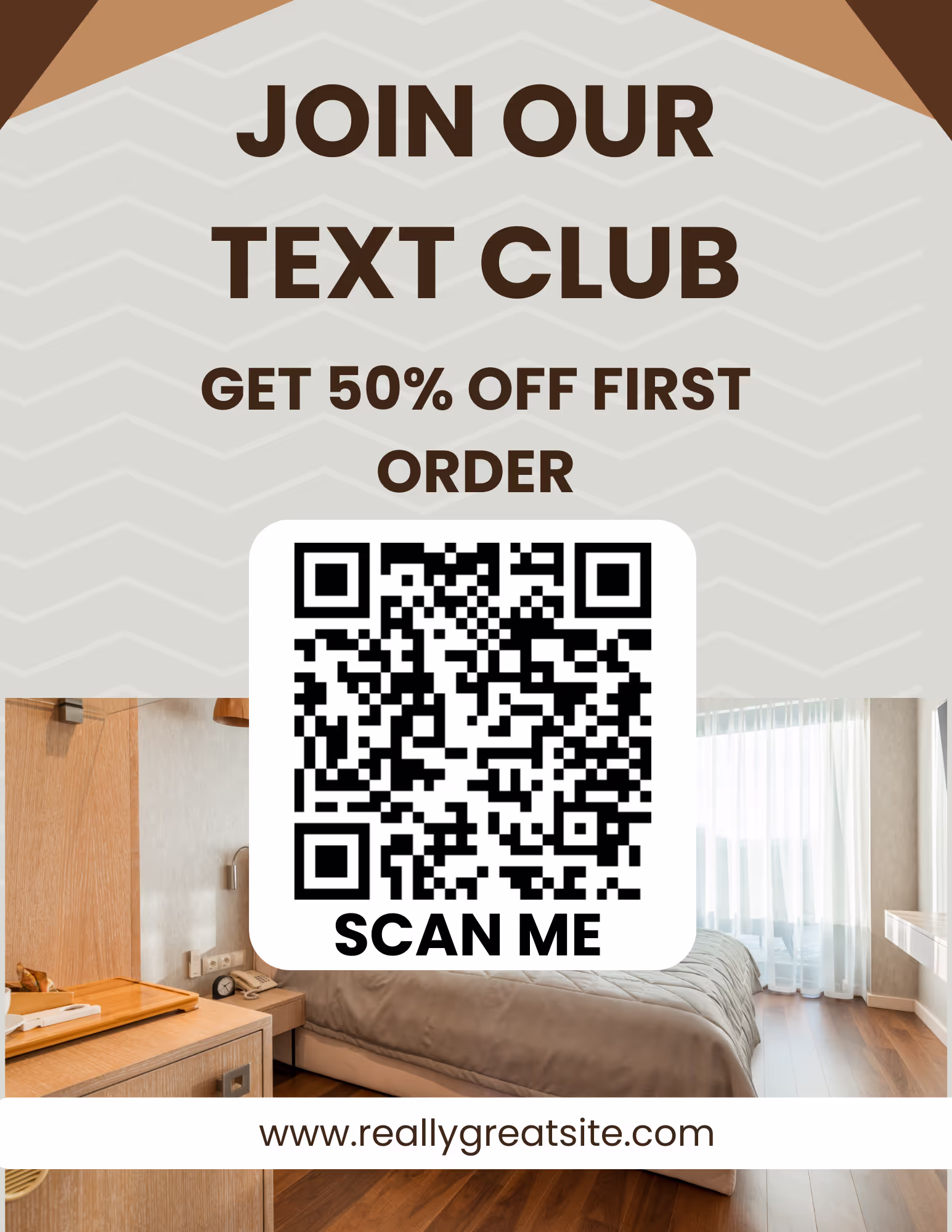 You can hang a poster in your business, like this mock example for a local company that is offering 50% off your first order when you join their Text Club.